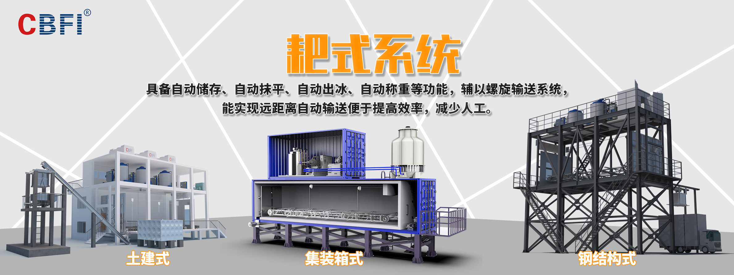 廣州冰泉制冷設(shè)備有限責(zé)任公司(商標(biāo)CBFI),大型氟制冷制冰設(shè)備行業(yè)開(kāi)拓者,是一家立足國(guó)內(nèi)、面向全球,集大型食用制冰設(shè)備、大型工業(yè)制冰設(shè)備、高端商用制冰機(jī)、成套制冰系統(tǒng)的研發(fā)、設(shè)計(jì)、制造、銷(xiāo)售、售后服務(wù)于一體的創(chuàng)新創(chuàng)業(yè)型高新技術(shù)企業(yè),是大型冰廠和冷庫(kù)工程解決方案服務(wù)商。